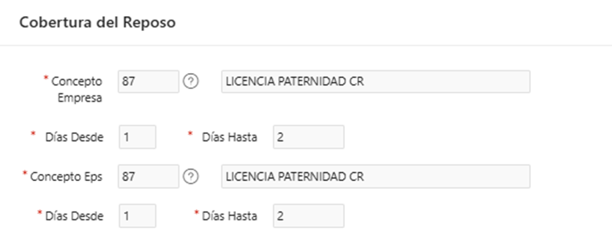 La Cobertura del Reposo es un parámetro que se completa automáticamente, siempre que las parametrizaciones previas estén debidamente completadas.
