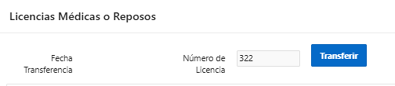 Luego de crear la Licencia Médica se asigna un Número de Licencia automático y se habilita un botón denominado TRANSFERIR.