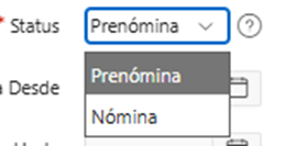 Status: Seleccionar prenómina para generar un precálculo y Nómina para un cálculo definitivo del aguinaldo.