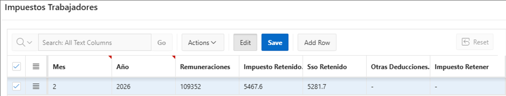 - Impuesto Retenido: Se debe colocar el monto de impuesto retenido al colaborador.