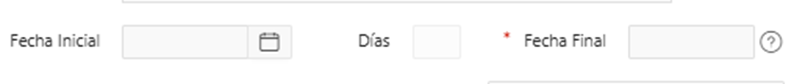 Fecha Final: se genera automáticamente según la fecha inicial y cantidad de días previamente indicados.