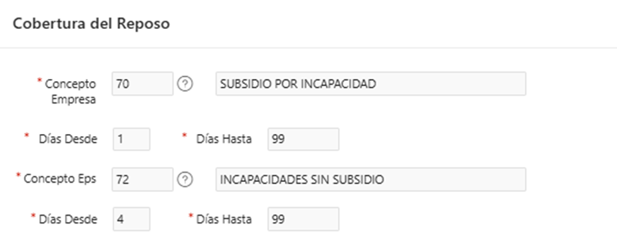 La Cobertura del Reposo es un parámetro que se completa automáticamente, siempre que las parametrizaciones previas estén debidamente completadas.