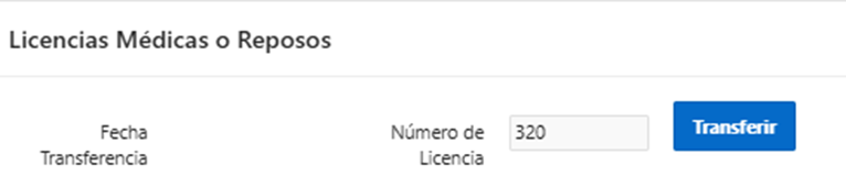 Luego de crear la licencia médica o incapacidad se asigna un Número de Licencia automático y se habilita un botón denominado TRANSFERIR.