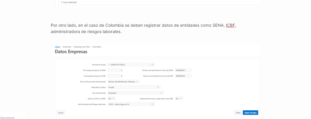 Por otro lado, en el caso de Colombia se deben registrar datos de entidades como SENA, ICBF, administradora de riesgos laborales.