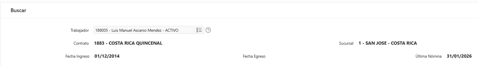 Seleccionar en el buscador al trabajador que desea registrarle una licencia por fallecimiento de un familiar.
