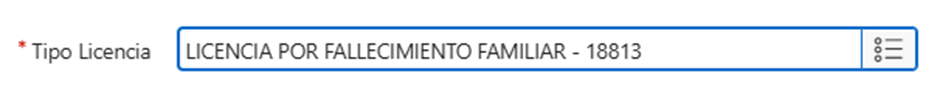 Tipo Licencia: Seleccionar la Licencia por Fallecimiento de un Familiar.