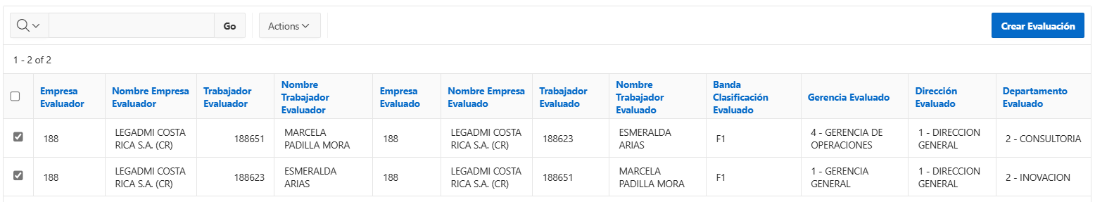 - Cuando se crean las planillas de 360° el evaluador y el evaluado será el mismo trabajador.