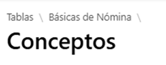 Ingresar a la ruta Tablas / Básicas de Nómina / Conceptos.