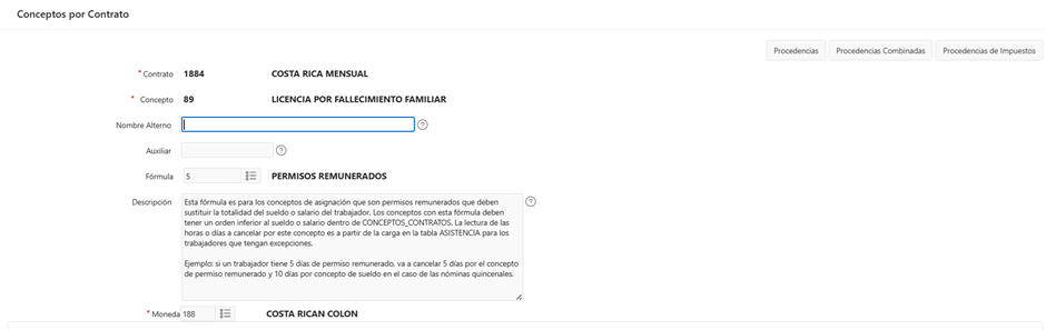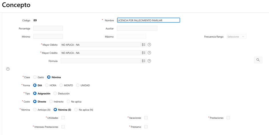 - Conceptos: Seleccionar el concepto correspondiente a la Licencia por Fallecimiento de Familiar.