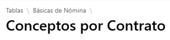Luego, ingresar a la ruta Tablas / Básicas de Nómina / Conceptos por Contrato.