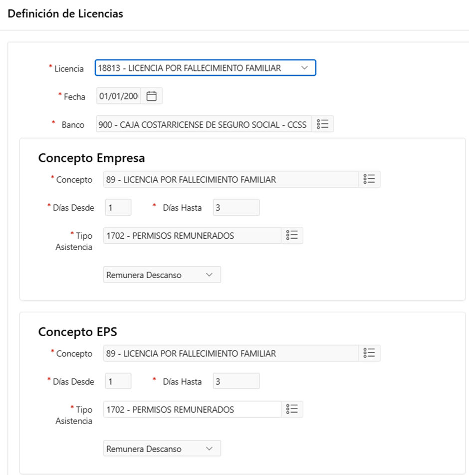 - ¿Cómo parametrizar una licencia por fallecimiento de un familiar?