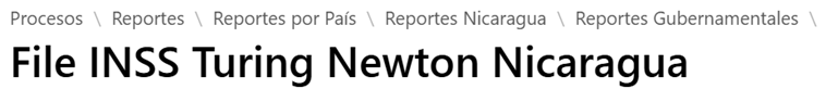 Para generar el reporte Turing Newton de seguridad social a través de la opción “File INSS Turing Newton” que se encuentra en la ruta Procesos / Reportes / Por País / Nicaragua / Reportes Gubernamentales; se requiere llenar los siguientes datos: