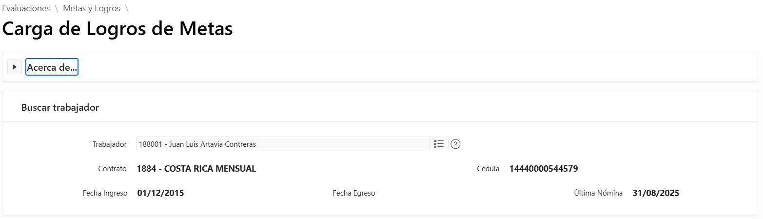 En esta pantalla se cargan los logros a cada una de las metas que se le asignaron a los trabajadores y que ya han sido aprobadas por el Supervisor.
