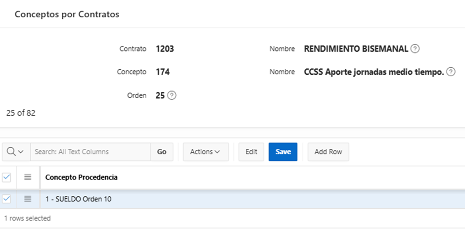 Luego, se debe crear en Conceptos por Contrato con la siguiente parametrización.