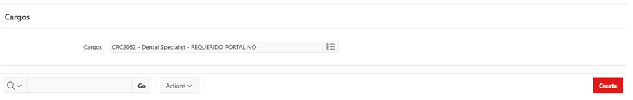 1. Para incluir la descripción en cada uno de los cargos, se elige el cargo de la lista de valores y se da click al botón create: